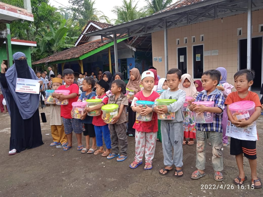 Kali ini, Mizan Amanah menyalurkan 100 parcel lebaran kepada anak-anak yatim dan dhuafa yang berada disana.