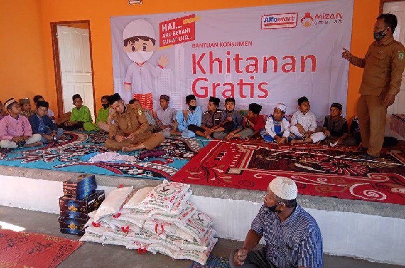 Mizan Amanah bersama Alfamart menyelenggarakan khitanan gratis bagi anak-anak yatim dan dhuafa di Kepenghuluan Panipahan Darat, Kecamatan Pasir Limau Kapas, Kabupaten Rokan Hilir, Provinsi Riau, (26/10).