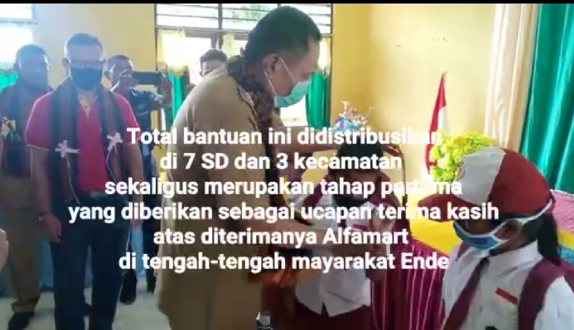 Mizan Amanah bersama Alfamart melakukan aksi sosial dengan membagikan 200 paket perlengkapan sekolah di Kabupaten Ende, Nusa Tenggara Timur.